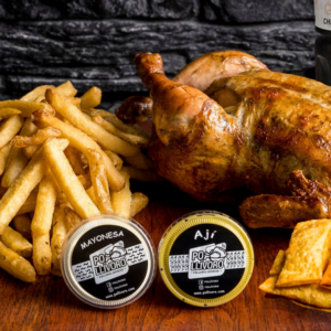 1 Pollo + 1/4 Pollo + Papas + Crema