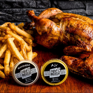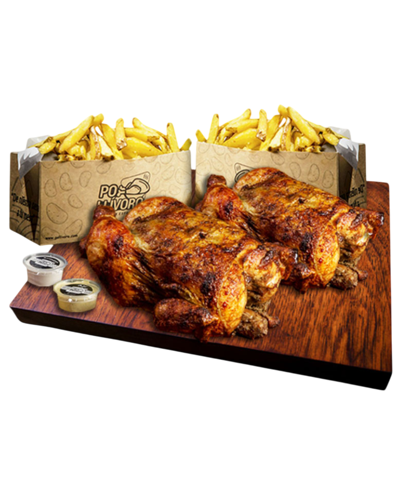 1 Pollo + 1/2 Pollo + Papas + Cremas